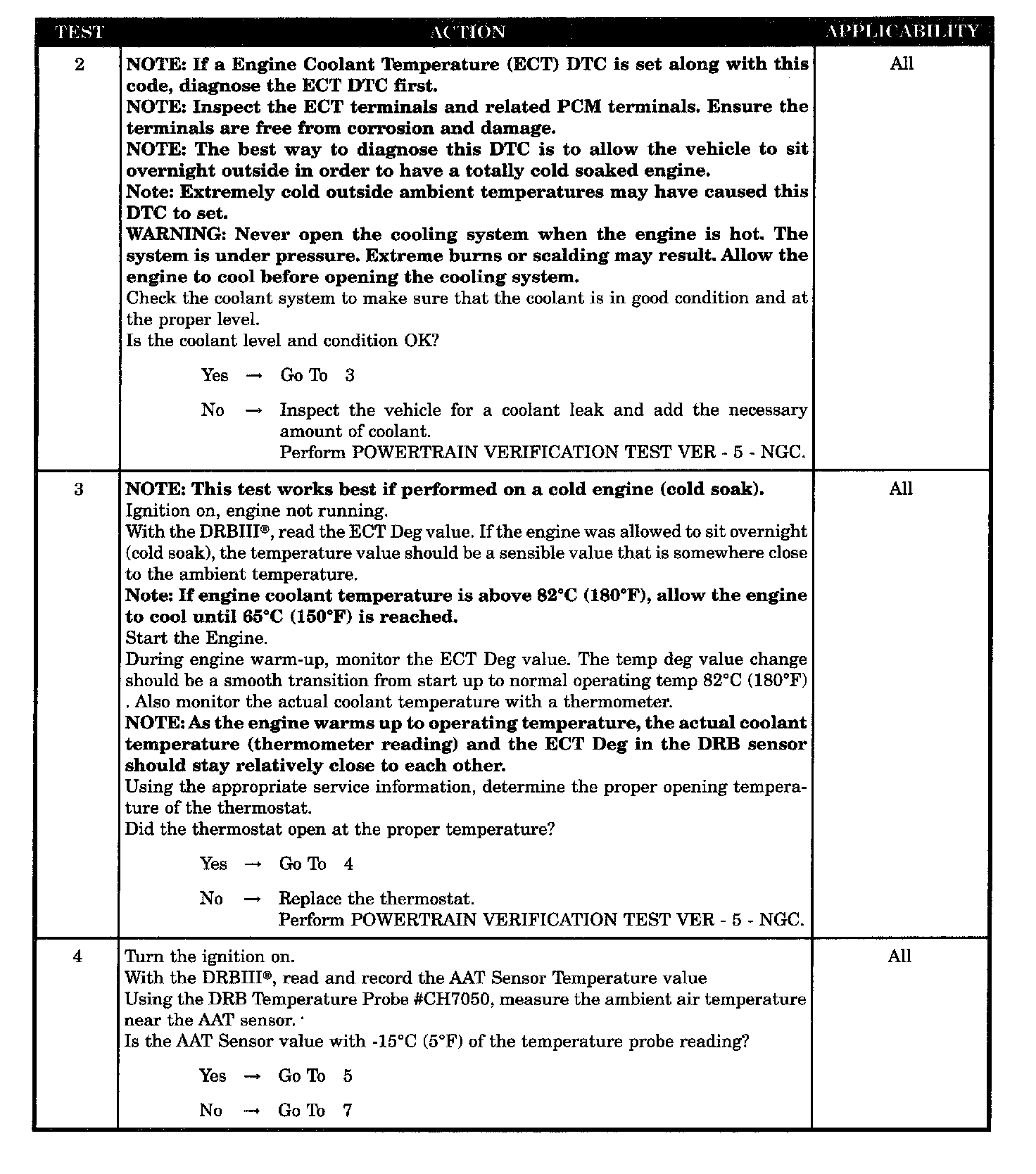 The PCM predicts a coolant temperature value that it will compare to the actual coolant temperature. If the two coolant temperature values are not within 10 °C (18 °F) of each other an error is detected. Two Trip Fault.