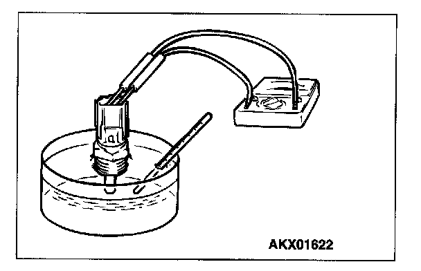 3. With the temperature sensing portion of engine coolant temperature sensor immersed in hot water, check resistance.