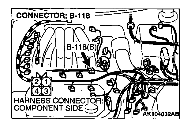 STEP 5. Check connect6r B-118 at injector intermediate connector for damage;