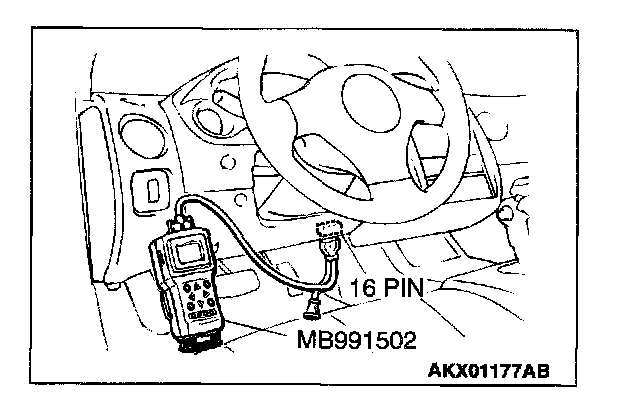 1. Connect scan tool MB991502 to the data link connector.