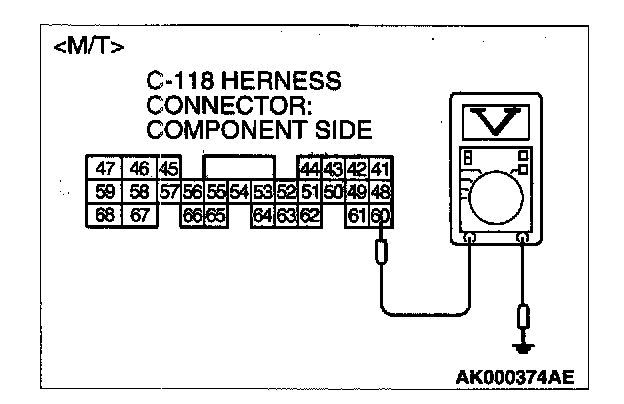 STEP 3. Measure the backup power supply voltage at ECM harness side connector C-118