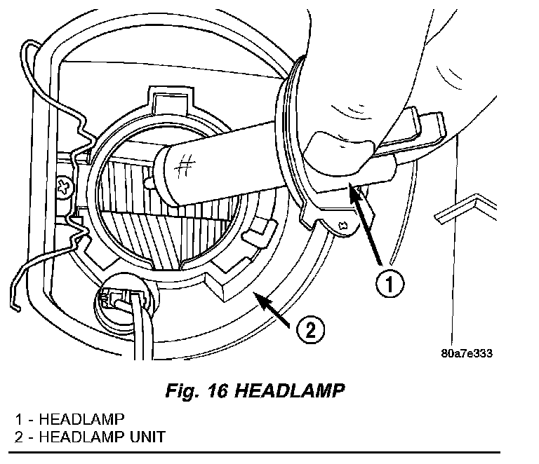 1. Install headlamp to the headlamp unit and secure with retaining clip.