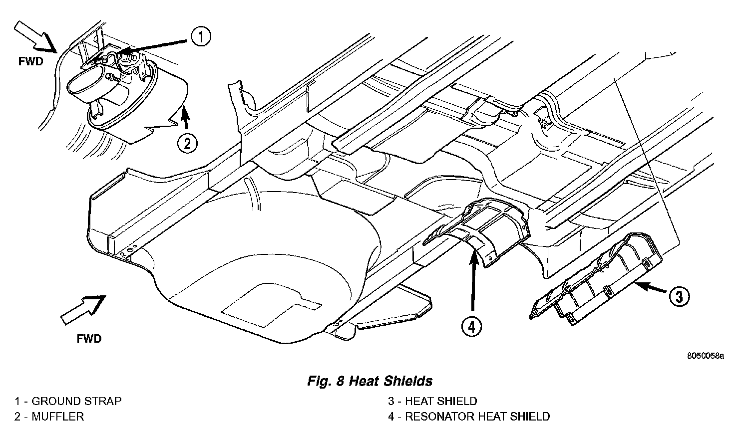 Heat shields are needed to protect both the vehicle and the environment from the high temperatures developed near the catalytic converter. Avoid application of rust prevention compounds or undercoating materials to exhaust system floor pan heat shields on cars so equipped. Light over spray near the edges is permitted. Application of coating will greatly reduce the efficiency of the heat shields resulting in excessive floor pan temperatures and objectionable fumes.
