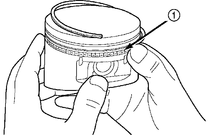9. Position piston ring No. 1 (2) end gap as shown in.