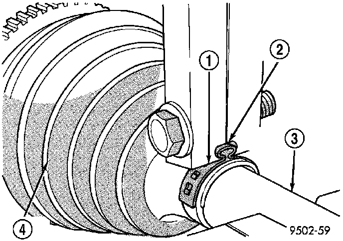 4. Install the spider assembly to interconnecting shaft retaining snap ring (3) into groove on end of interconnecting shaft. Be sure the snap ring is fully seated into groove on interconnecting shaft.