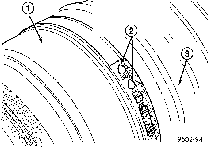 1. Remove large boot clamp which retains inner tripod joint sealing boot to tripod joint housing and discard. Remove small clamp which retains inner tripod joint sealing boot to interconnecting shaft and discard. Remove the sealing boot (3) from the tripod housing and slide it down the interconnecting shaft.