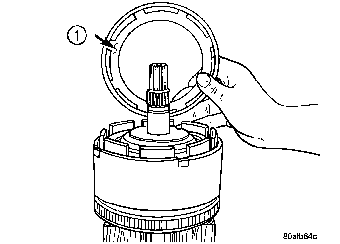 26. Install the OD/Reverse reaction plate (1) with large step down (towards OD clutch pack).
