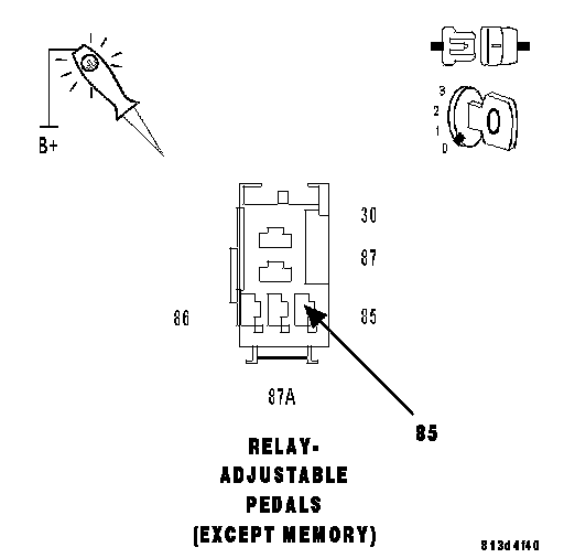 Using a 12 volt test light connect to ground, check the internal Fused B(+) circuits at the Adjustable Pedals Relay connector of the IPM.
