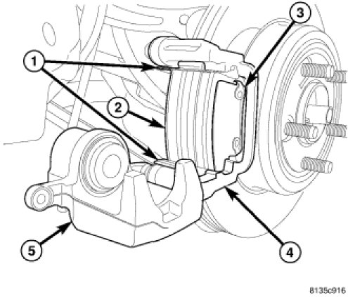 NOTE: Before installing caliper guide pin bolts, clean guide pin bolt threads and apply Mopar(R) Lock & Seal Adhesive or equivalent.