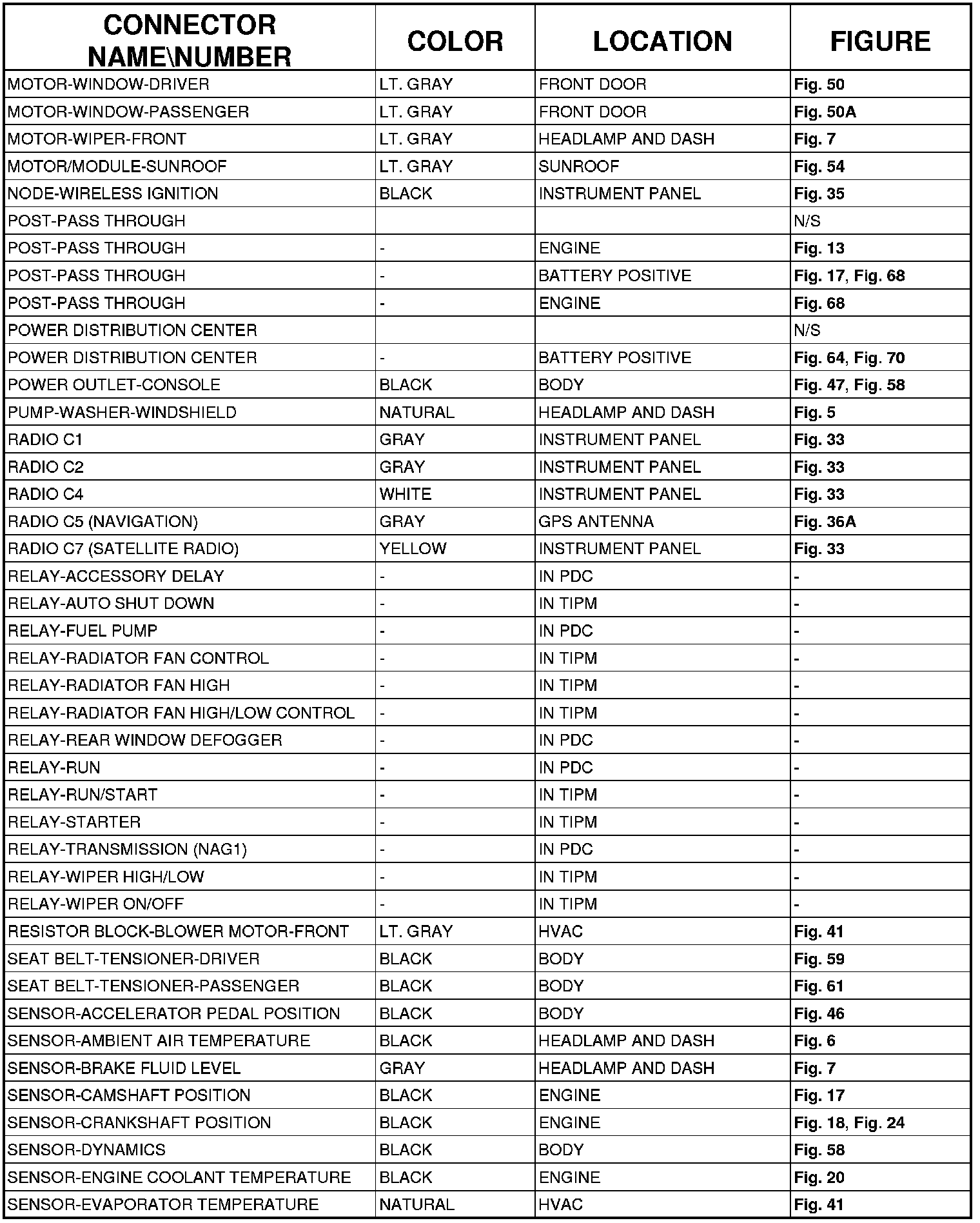 If a link on the index chart to a figure is not provided, that means that the connector and/or figure in question does NOT apply to the vehicle model selected.