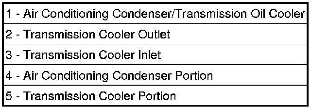 The cooler uses tubes and rubber hoses to feed oil to and from the automatic transaxle. The replaceable inlet and outlet tubes use quick-connect type fittings. The trans oil cooler is replaced with the A/C condenser.