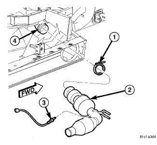 4. Loosen and remove V-Band clamp (1) from exhaust pipe to exhaust manifold connection and discard.