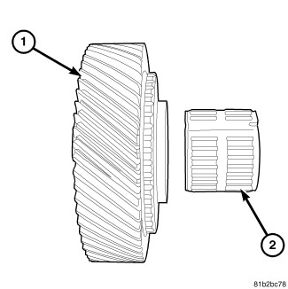 Inspect synchronizer sleeve (1) and hub (2) for worn teeth. Inspect synchronizer detents (3) for broken springs, missing balls or cracked/damaged housings.