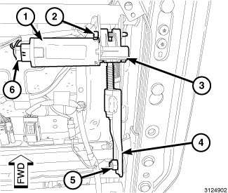 6. Disengage the fore/aft power seat motor (6) from the bracket (5) and remove the motor and drive cables as an assembly.