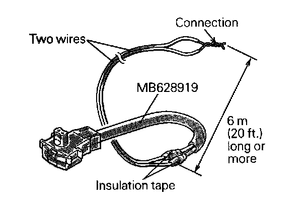 3. Connect two wires each six meters (20 feet) long or more, to the two leads of SRS AIR BAG ADAPTER HARNESS B, and cover the connections with Insulation tape. The other ends of the two wires should be connected to each other (short-circuited), to prevent sudden unexpected deployment of the air bag.