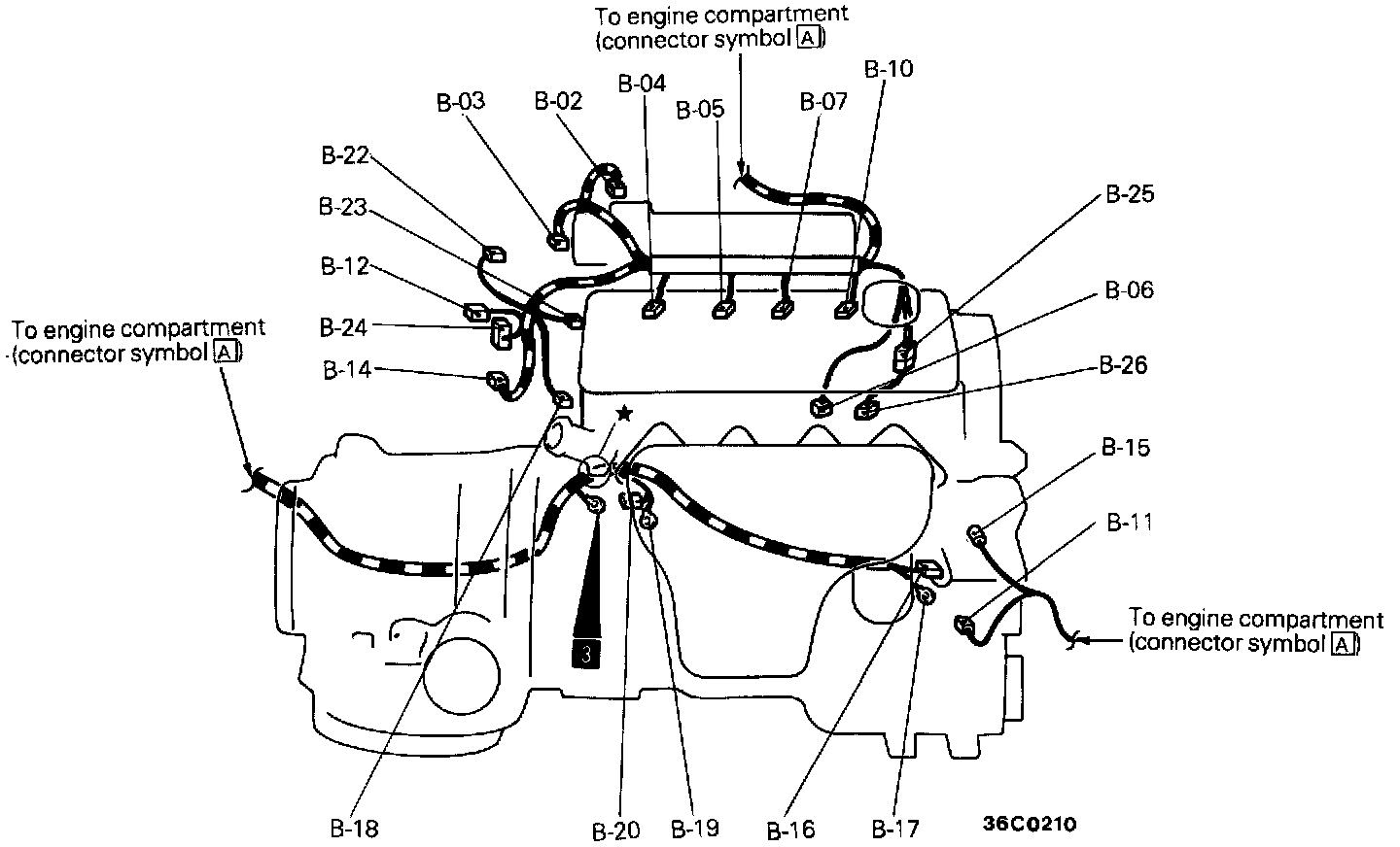 1. The mark "star" shows the standard mounting position of wiring harness.