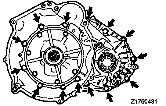74. Clean the gasket surfaces of both the transaxle case and oil pan. Using a new oil pan gasket, install the oil pan by tightening the 12 bolts to the specified torque.