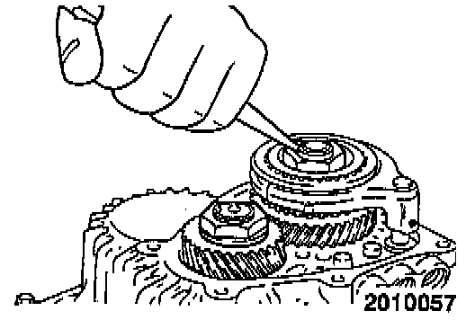 1. Unstake lock nuts of the input shaft and intermediate gear.