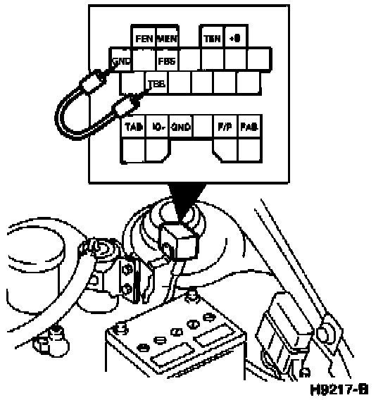 - Connect an analog VOM between "FBS" (Failure Brake System) terminal and engine ground.