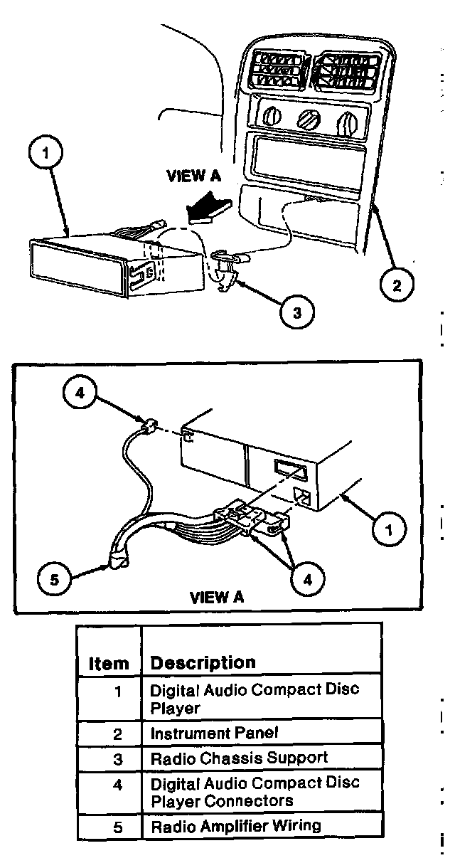 4. Disconnect the wiring connectors and remove the digital audio compact disc player.