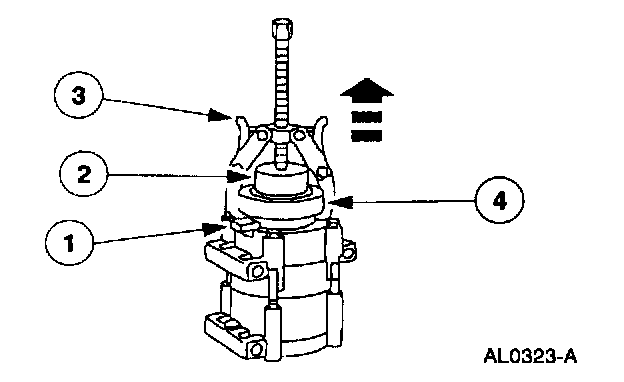 4 Use the 2-Jaw Puller to install the A/C clutch field coil until bottomed completely against the A/C compressor.
