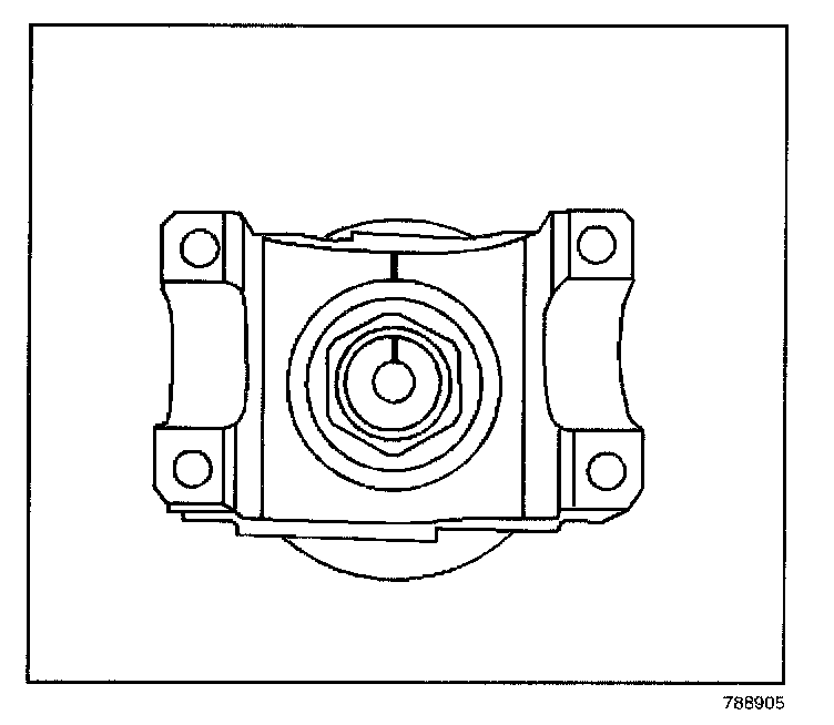 11. Install the propeller shaft yoke retaining clamps and the bolts.