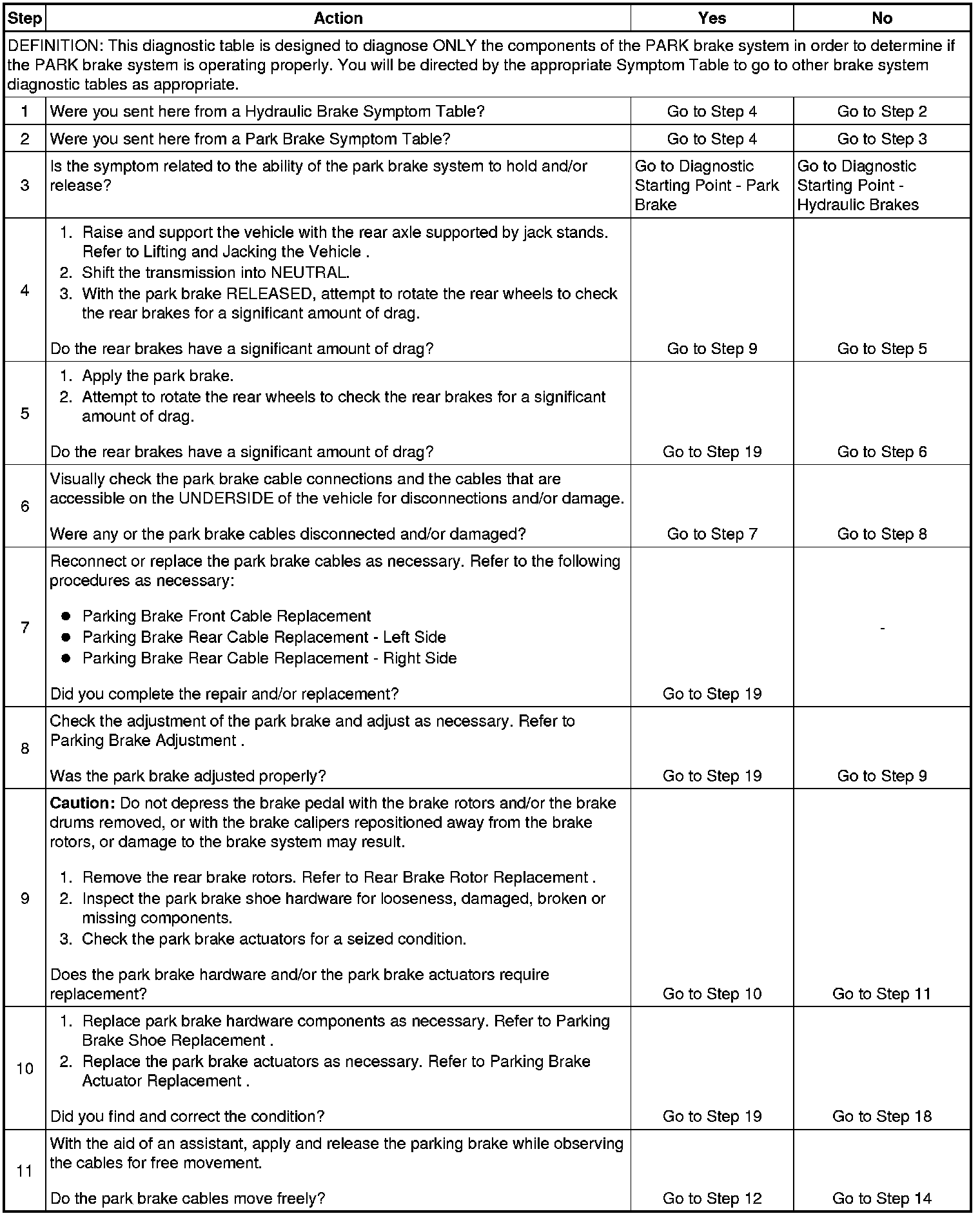 Park Brake System Diagnosis