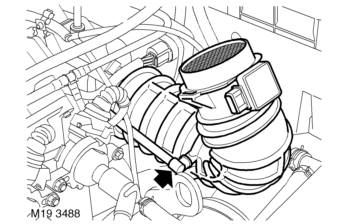19. NAS models: Release clip and remove intake hose and MAF sensor assembly.