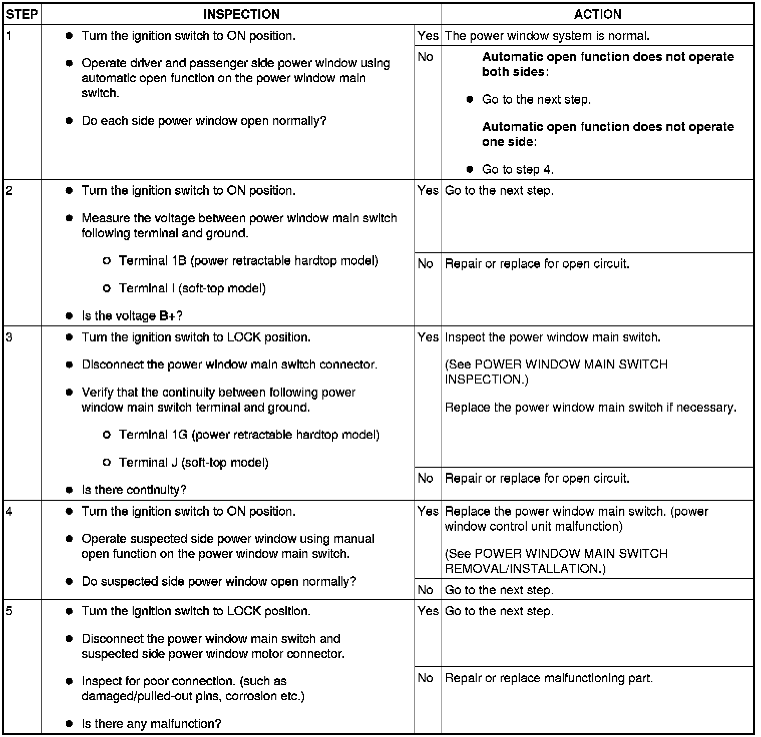No.1 The Auto Open Function On The Driver'S And Passenger'S Side Power Window Is Inoperative
