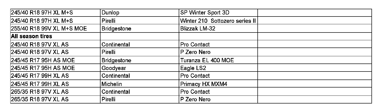 The recommended tire makes are listed in alphabetical order. No suggestion of priority is intended.