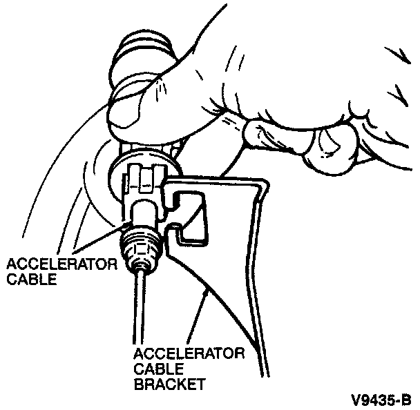 3. Squeeze the lock tabs and remove the accelerator cable from the accelerator cable bracket.