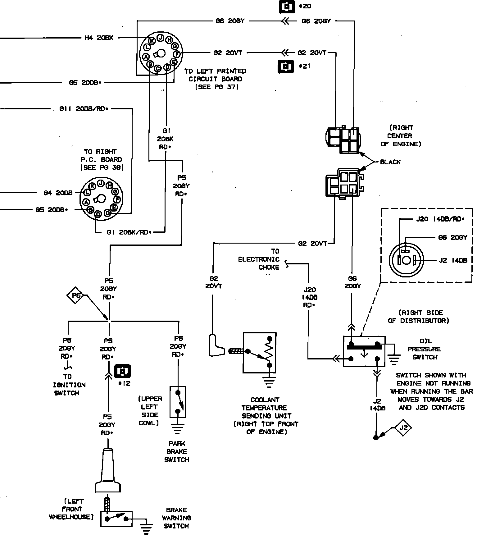 Fig. 11 Brake Switch, Fuel Tank, Oil Pressure Switch, Seatbelt & Temperature Warning System Wiring Circuit (Part 2 of 2):