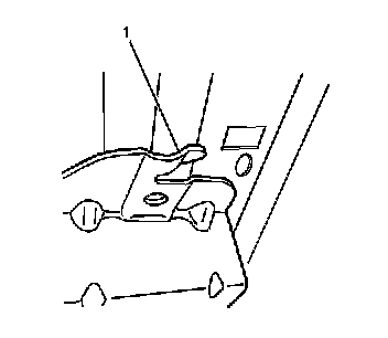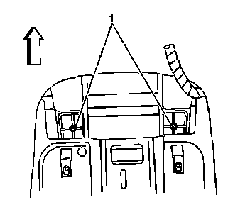 1. Carefully install the bracket to the vehicle through the headliner opening, ensuring the locating tabs (1) are fully seated to the roof bow.