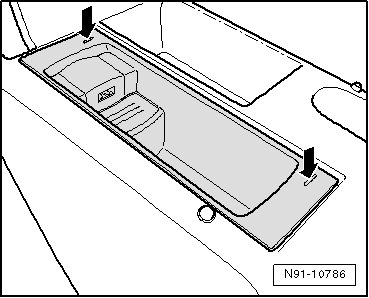 - Push extracting tools apart in - direction of arrow - so that the locking mechanism disengages easily. Then pull the complete insert out of center armrest with extracting tools pressed.