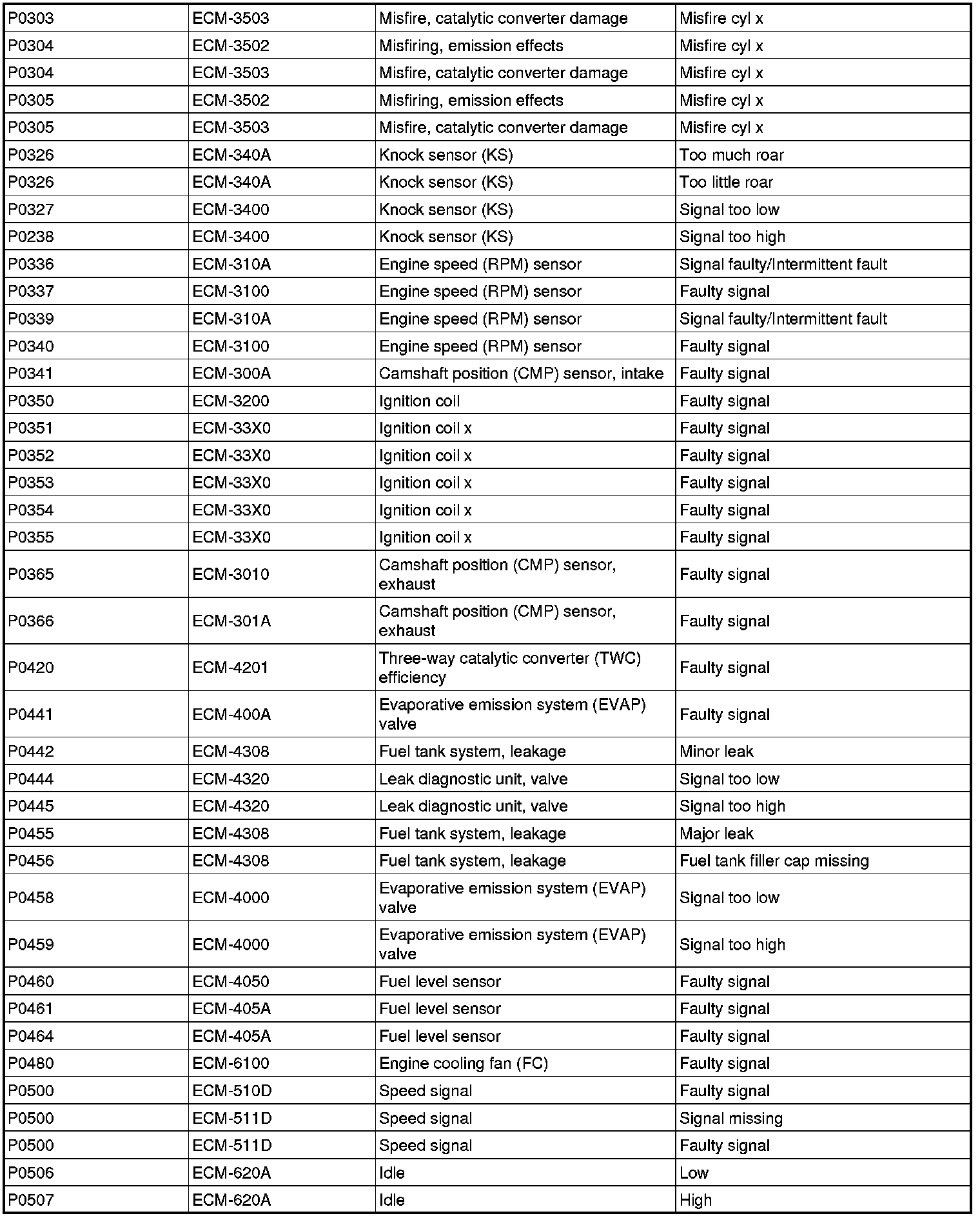 The table below is a conversion table between standardized diagnostic trouble codes (DTCs) (SAE/ISO) and the equivalent Volvo diagnostic trouble codes (DTCs) (DII).